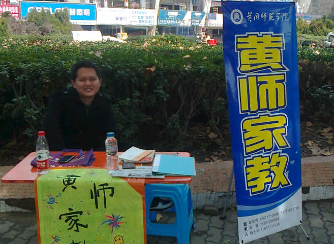 在大一下学期开始,由于家里经济负担较重,父亲早逝,母亲瘦弱的肩膀扛起了整个家庭,他就有了自主创业的想法。万事开头难,该做什么好呢?他时时刻刻在问自己,商机在哪里呢?通过市场的考察以及对鄂州黄冈两地的需求分析,结合我校师范院校的特色,良好的教师口碑,他心中有一念想:创办教育机构,由个人家教过渡到家教公司,再从家教公司转型为特色课外培训班,最后走向教育品牌。有了这个宏伟目标后,他开始谋划他的梦想,但问题出来了资金哪里来?他的银行卡里只有不到一百二十元钱,一百二十元钱能做什么好啊?在他脑海里顿时闪过一个念头——打工挣钱,他先后做的兼职不下十多种,摆地摊,食堂打工、卖花、做家教等。与此同时,他深深知道一个人的力量是有限的。于是他和自己班上的同学杨之书、吴登、徐雨濛商量兼职的事情。挣钱,创业,志同道合的人天生就是搭档,他们一拍即合。他们经常一起去考棚街、十字街等处去发传单,做搬运工,炎炎夏日,汗流浃背,他的白衬衫都黏在汗渍的背上。终于,辛勤的汗水浇灌出美丽的花朵,他和同学一起成功攒到六千三百二十七块钱,他的家教事业有了第一笔资金的支持。