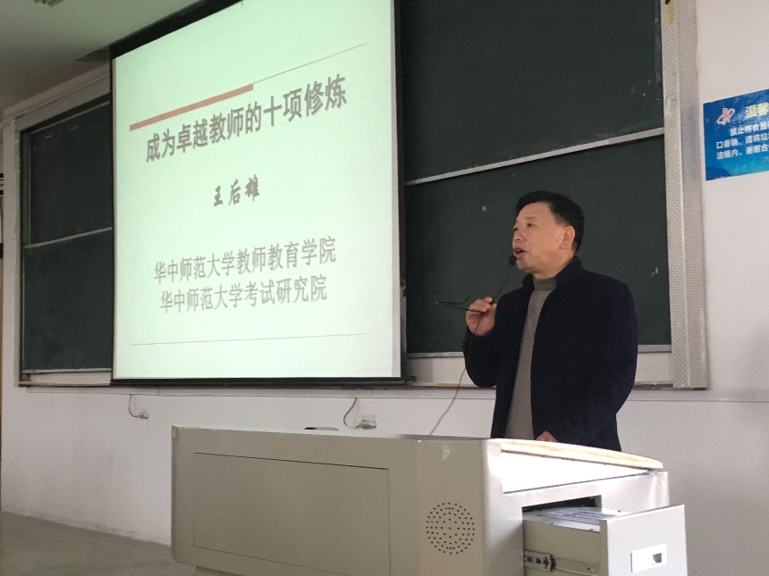 11月28日上午,华中师范大学考试研究院院长、教师教育学院副院长、化学教育研究所所长、博士生导师王后雄教授在我校博学楼A03教室作报告,报告题目为《成为卓越教师的十项修炼》。WilliamHill威廉全体教师和化学师范专业全体本科学生和教育硕士研究