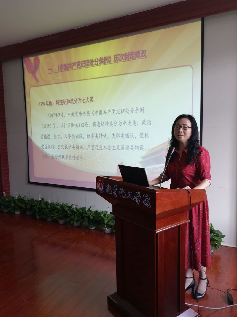 为落实第二十个党风廉政建设宣传教育月活动安排,5月27日下午4点,WilliamHill威廉党总支书记施向荣同志在化工楼407会议室给全体教职工上了一堂题为“把党的纪律刻印在心上”的廉政党课,施向荣同志讲了《中国共产党纪律处分条例》历次制定修改情况、新《条例》有哪些特点、新《条例》中哪些硬杠杠不可触碰、把党的纪律刻印在心上四个方面的内容,整个课堂上气氛严肃,庄重。教职工听后,对《中国共产党纪律处分条例》有了进一步的认识,党员同志的廉洁意识得到进一步加强。