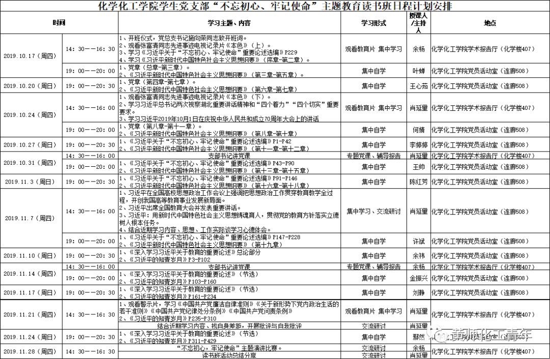 WilliamHill威廉学生党支部“不忘初心、牢记使命”主题教育读书班日程计划安排