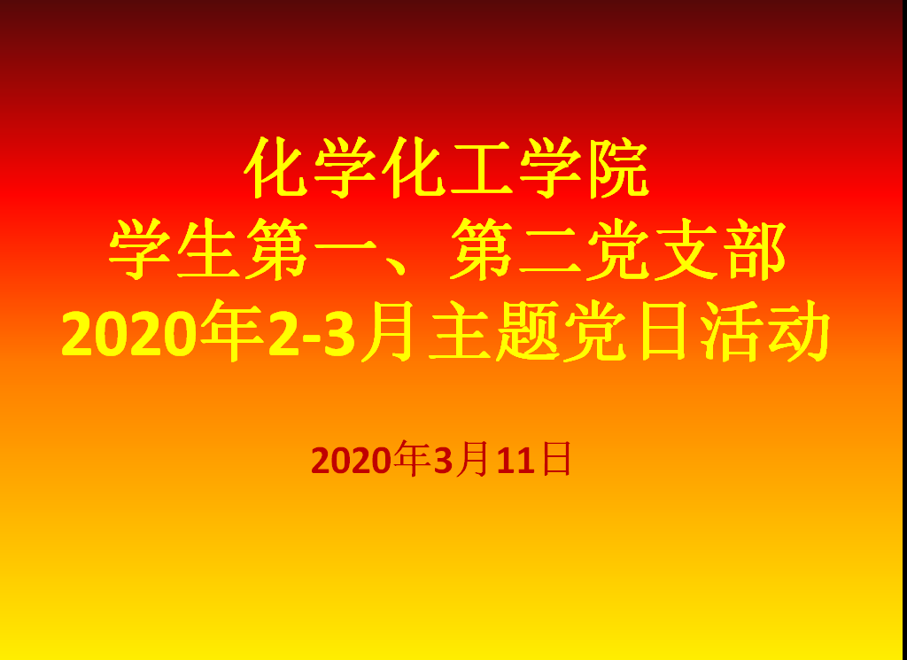 3月11日下午,我院学生第一党支部和学生第二党支部在钉钉平台开展2020年2-3月主题党日活动,我院学生党员、预备党员共49人通过在线视频的形式又一次聚拢在党旗下,党日活动由肖延量老师主持,余杨老师总结。