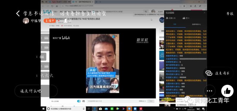 化工1901班观看了“北大援鄂医疗队‘90后’”党员的心里话。看着那些医疗队员们汇报了在抗疫一线抢救生命的情况,坚定了继续发挥党员作用、为打赢疫情防控阻击战贡献力量的决心。听着一句句感人的话语——“我们可以担起更多的责任”、“如果不来的话,肯定会后悔一辈子”、“我会主动站出来,利用专业特长去帮助一些患者”、“17年前我们被保护,现在该我们站出来了”、“能在战疫一线火线入党,我一定不辜负这份信任”。他们用自己的心里话表现了他们的责任担当精神,彰显了青春的蓬勃力量。