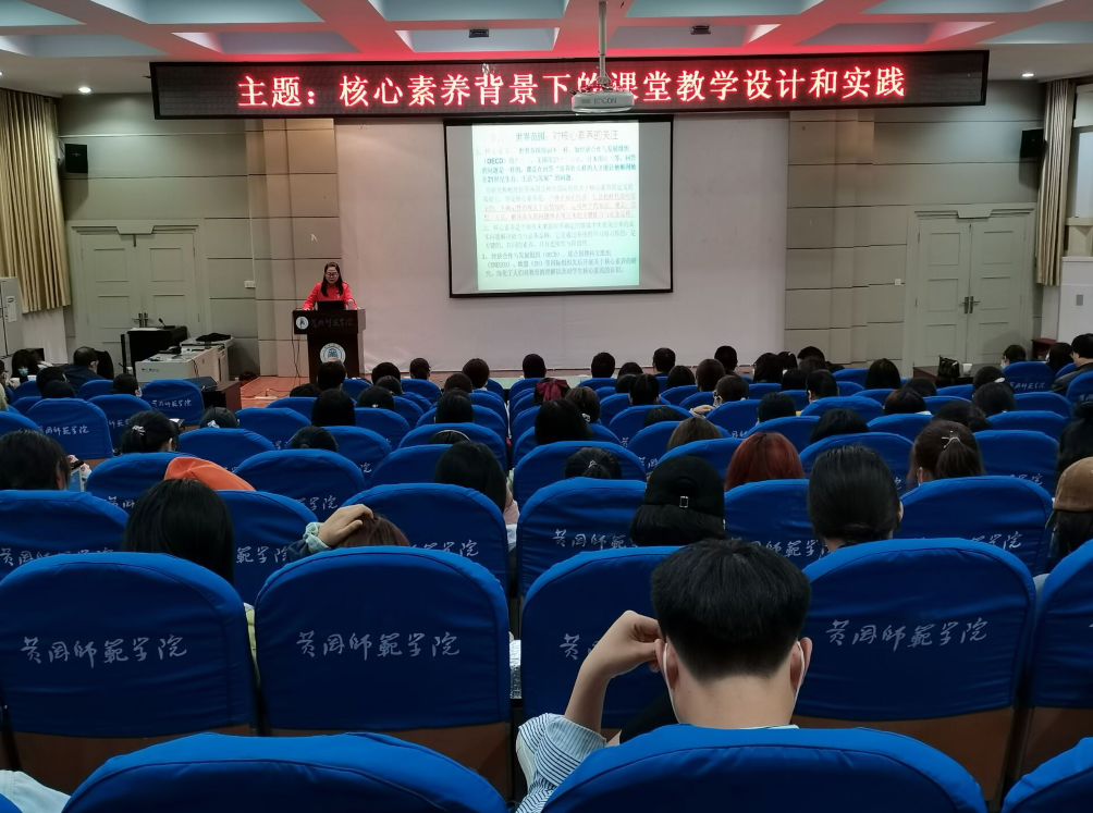 王小兰教授的报告题目为《核心素养背景下的课堂教学设计和实践》,报告从引言、核心素养的研究、核心素养背景下的课堂教学设计、教学实践与思考四个方面展开,王教授结合国际国内研究现状、教育部相关文件会议精神以及自己在基础教育、职业教育、高等教育多年的工作经历,就课堂教学设计的意义、方法、实践进行了详细的讲解。报告给人以深刻启迪,老师和同学们受益匪浅。本次报告会对于提高我院青年教师教学能力、提高我院人才培养质量、推进师范专业认证等工作具有很强的指导意义。