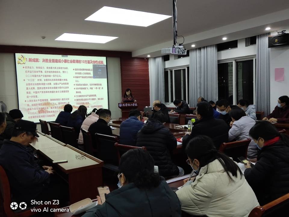 根据学院工作安排,12月10日晚上7点,我院为了加强全院师生贯彻理解党的十九届五中全会精神,党总支书记施向荣为全院师生作宣讲报告,学院班子成员及全体教师50余人在化学楼407参加学习,为做好疫情防控,学生同时通过腾讯会议直播参加了学习。