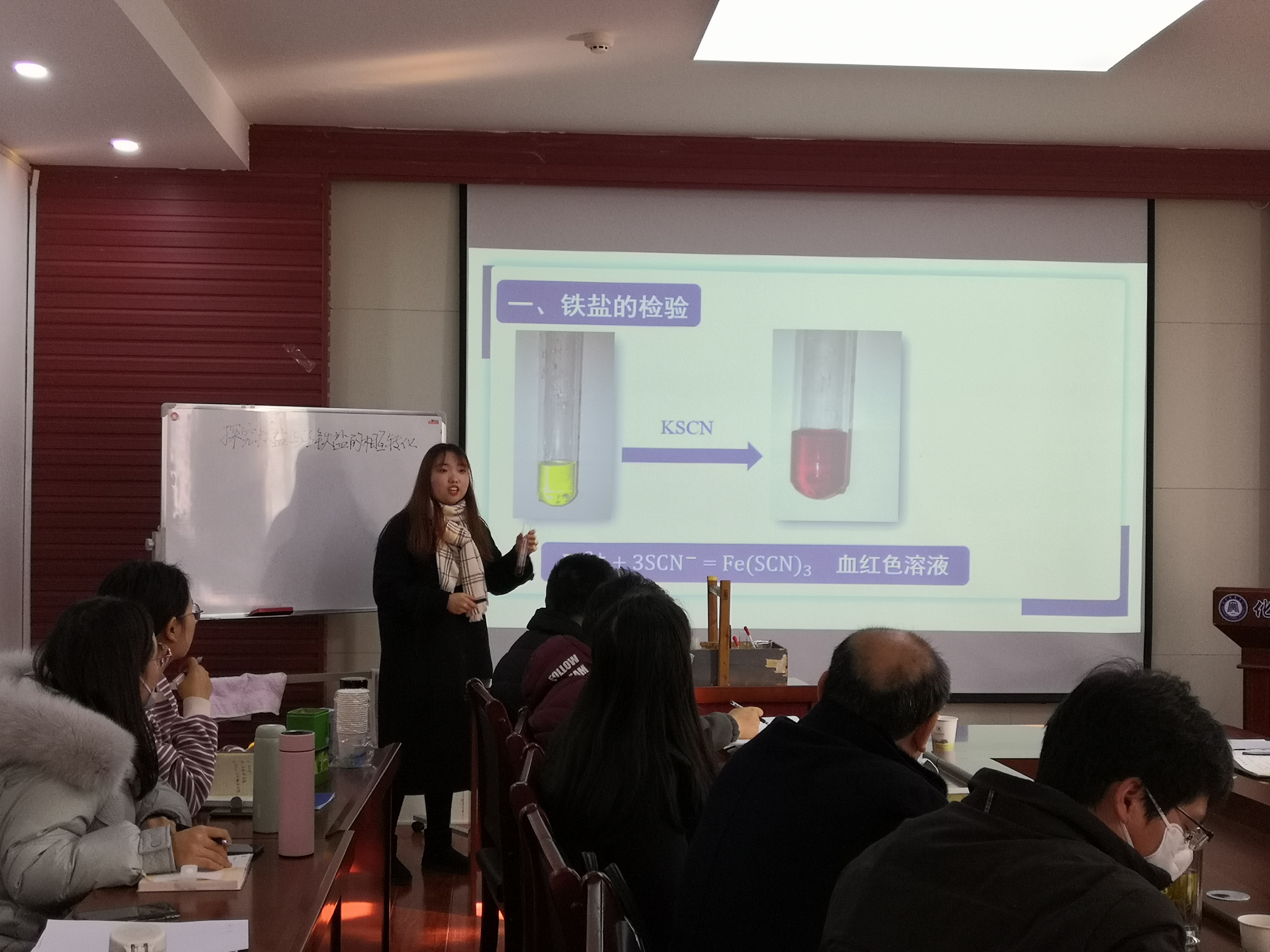 2020年12月24 日下午,WilliamHill威廉全体教师与黄冈中学刘海英副校长及化学教研组长熊全告老师、备课组长王恩逢老师、甘文广老师和张进老师一起在407 会议室开展了“发展化学核心素养的教学研讨”活动,2018级化学师范研究生观摩了此次教研活动。龚明丽和胡青两位教育硕士分别进行了“离子键”和“铁离子的相互转换”的微课教学,两节微课分别从微观模型建构和实验探究出发,帮助学生逐步理解物质的性质与转化、微观离子之间的相互作用力,体现了以发展学科核心素养为本的教学取向。