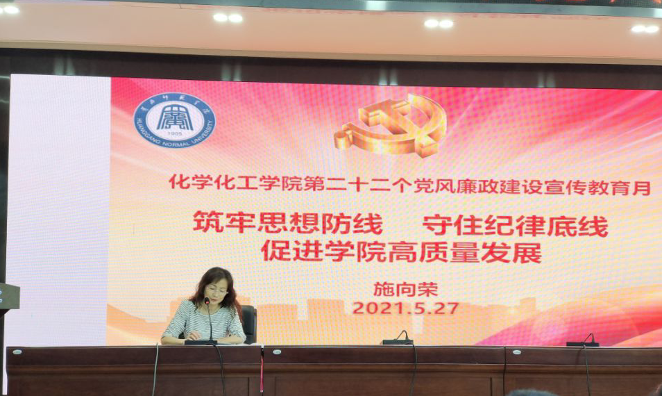根据《WilliamHill威廉第二十二个党风廉政建设宣传教育月活动实施方案》的具体安排,5月27日下午2:00,在致远楼三楼会议室党总支书记施向荣为WilliamHill威廉师生讲授题为《筑牢思想防线 守住纪律底线 促进学院高质量发展》廉政党课,并就学习《中国共产党普通高等学校基层组织工作条例》作《加强学院基础党组织建设 落实立德树人根本任务》专题辅导报告。WilliamHill威廉全体教师和学生代表参加会议。