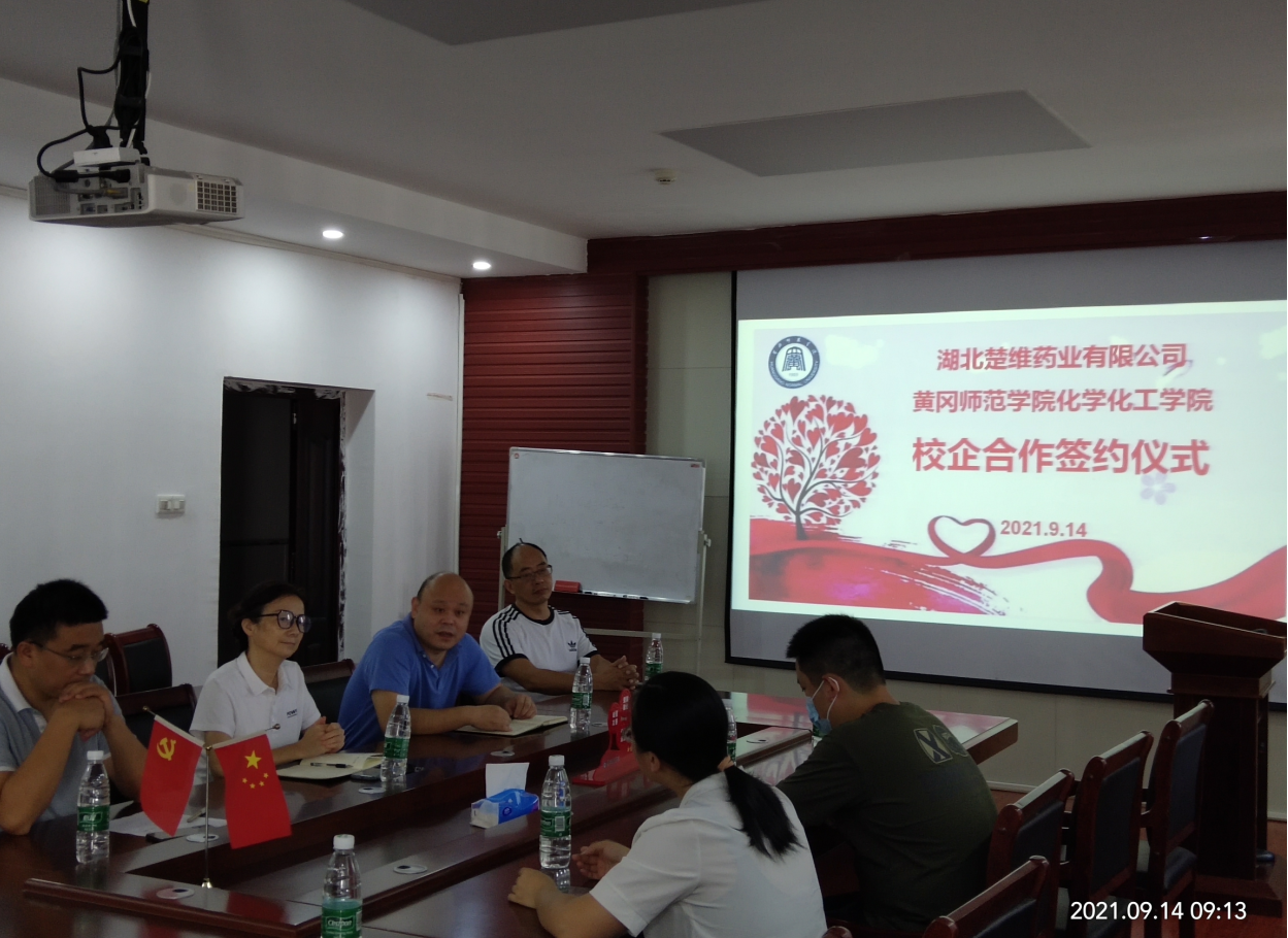 随后湖北楚维药业有限公司总经理熊沣介绍了公司的发展历程,现在公司己进入发展新阶段,针对公司产品较单一的情况,亟需引进高端人才开发新产品,相信与我院的合作能促进公司进一步快速发展。