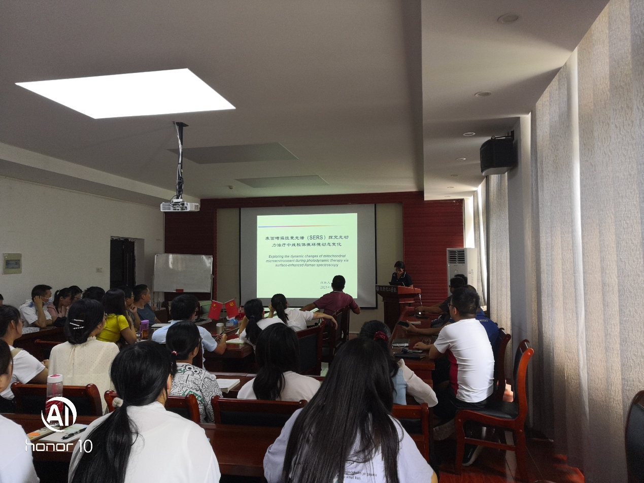 此次博士沙龙活动由新引进的四名博士做交流报告。报告题目依次是:邵东博士:《钴基双稳态分子磁性材料的设计与合成》;杨小东博士:《邻碳硼烷衍生物的制备及其光电应用研究》;岳静博士:《探究光动力治疗下线粒体内微环境变化》;明淑君博士:《氧化锰八面体分子筛和Cu-SAPO-18催化剂在NH3-SCR反应中的应用研究》。
