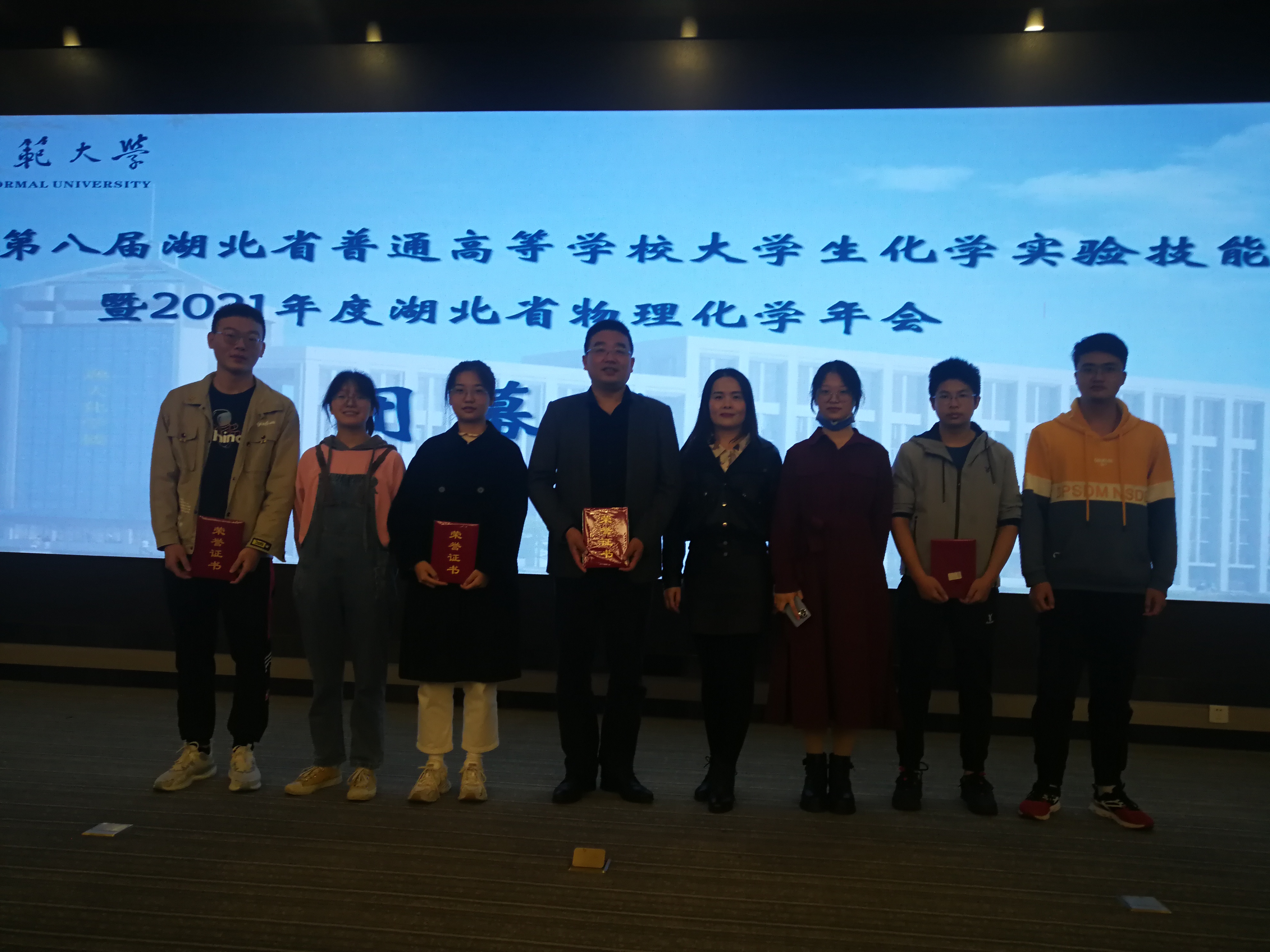 2021年10月15日至17日,由湖北省教育厅举办、湖北化学化工学会协办的“第八届湖北省普通高校大学生化学实验技能竞赛” 在华中师范大学举行。经过紧张激烈的比赛,我校学子获一等奖2项、二等奖2项、优秀奖2项,并获得总分第二名的优异成绩。
