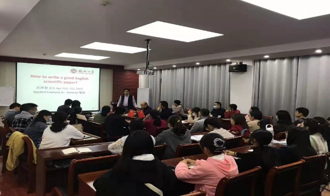 近日,我院特聘教授,香港浸会大学教授,博士生导师,国际催化化学界著名学者,英国皇家学会院士,亚太催化协会创始成员,中国催化委员会成员,“Applied Catalysis A:General”主编区泽堂教授于威廉中国官方化工楼407给全院师生开展了为期8天的系列讲座。讲座围绕“写好英文论文,国际期刊投稿准则,如何回应审阅者的评论,Numbers and units,主语动词单复数一致性,英式及美式英文,正确使用连字符,如何选择论文论题“等内容展开。