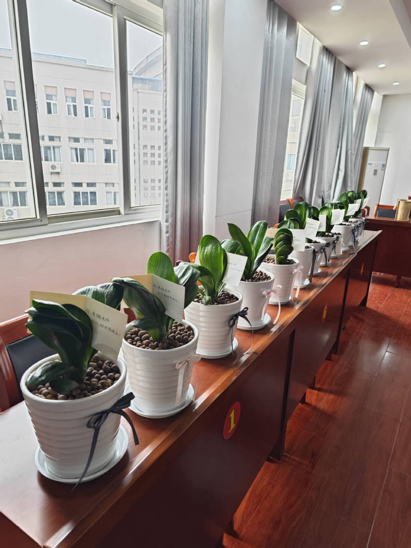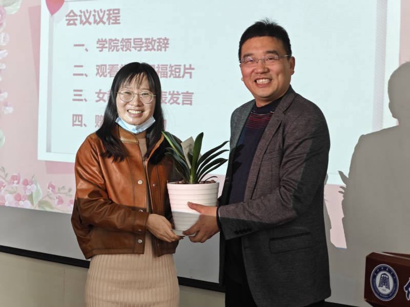 最后,学院领导依次为女教师们送上一份节日礼物一一绿植君子兰,祝福全体女教师们节日快乐!青春永驻!万事如意!