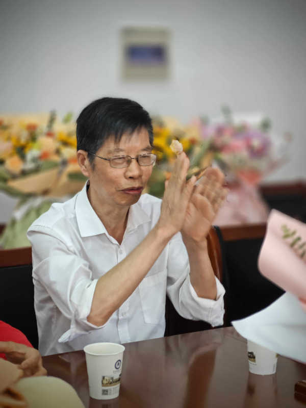首先,在场老师们观看了学院进行准备的祝福视频。来自天南海北的黄师化学专业的校友们深情回忆起自己与三位老师相处的点滴,说起三位老师在平日工作中给到学生们的如春风一般轻柔又温暖关怀。廖老师的直爽、潘老师的和蔼、王老师的温厚,无一不给与其相处过的学生们留下深刻印象,他们对工作的认真负责、对学生的细致关怀、对生活的非凡热爱,永远铭记在学生和同事心中。