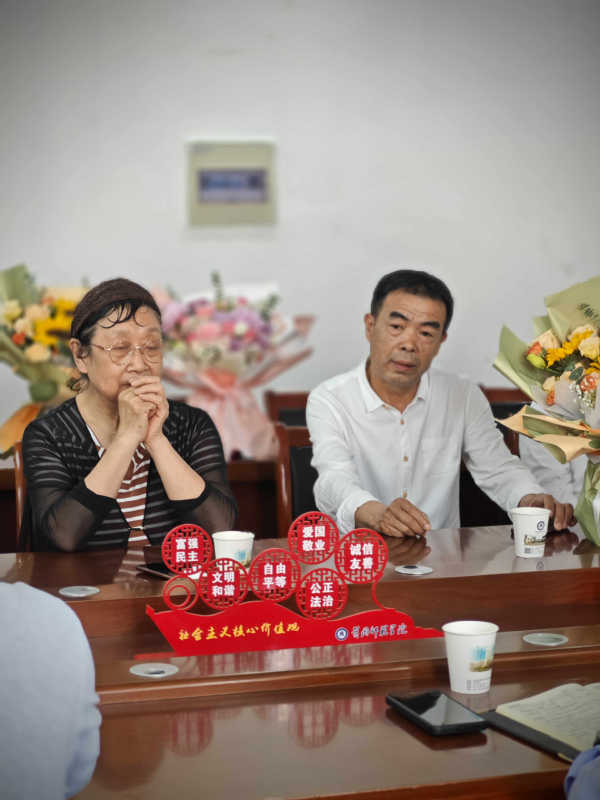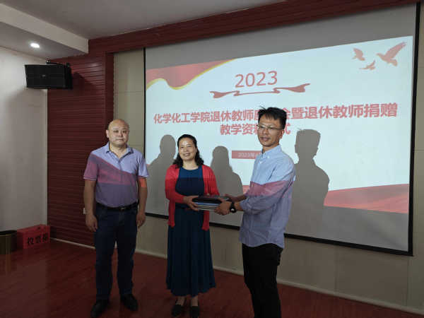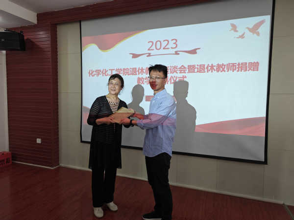 在捐赠教学资料仪式上,退休教师代表赵胜芳老师、朱丽红老师将自己多年教学期间的笔记捐赠给学院,学院党委书记、院长作代表学院接受捐赠并对表示衷心的感谢。
