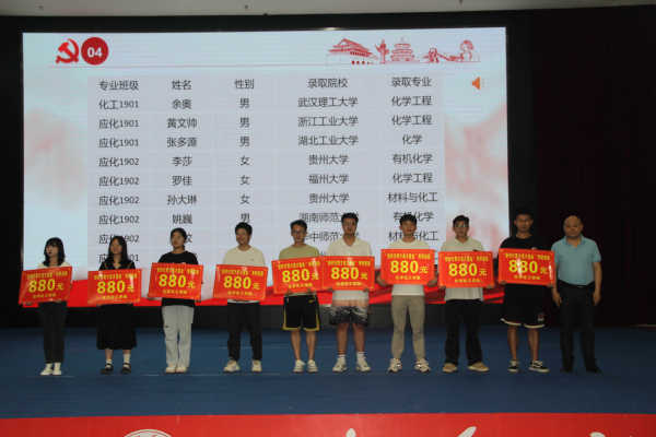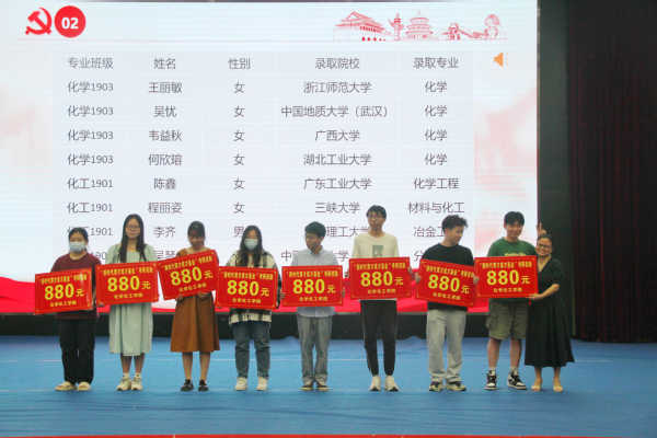 会议第三项,给2023届毕业生考取研究生的同学进行表彰颁奖。