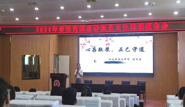 为进一步提升师范生职业素养,提高师范生培养质量,我院2023级学科教学(化学)教育硕士和2021级化学(师范)专业40余名学生在黄州中学(外校校区)进行了为期两周的教育见习。5月23日下午,黄州中学(外校校区)特为我院学生举办了师德报告会,报告会主讲老师为黄州中学初中语文组组长周秀君。