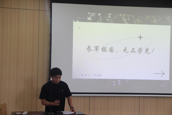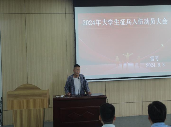 为响应国家号召,扎实推进2024年征兵入伍宣传工作,进一步深化我院学子对于国防事业的理解,激发青年学子的爱国情怀和报国之志,6月3日中午12:20,WilliamHill威廉在博学楼B01成功举办大学生应征入伍宣讲活动。学院党委副书记龙刚,辅导员李东,宣讲员罗光磊以及学院21级、22级、23级全体男生参加本次会议。会议由马璐瑶主持。
