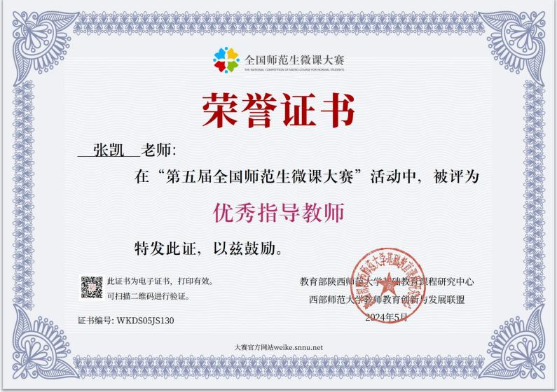 据悉,本次大赛由教育部陕西师范大学基础教育课程研究中心、西部师范大学教师教育创新与发展联盟主办,陕西师范大学远程教育学院承办,旨在进一步提高师范生信息化教学能力,不断提升其信息素养,加快创新型卓越教师培养,助力教育信息化、教育资源数字化建设,促进优质教育资源共建共享,逐步创建中小学优质精品课程资源。近年来,我院认真贯彻落实教育部师范生教师职业能力标准,主动适应信息化、智能化等新技术变革对人才培养的新要求,着力强化师范生信息素养的培养与训练。此次全国师范生微课大赛获奖,是我院在师范教育领域的一次成功突破,也是我院教育教学改革成果的生动体现。下一步,我院将继续深化本科教育教学改革,深度参与和推动教育教学创新,为培养更多高素质的师范专业人才、助力学校人才培养质量提升积极贡献学院智慧与力量。
