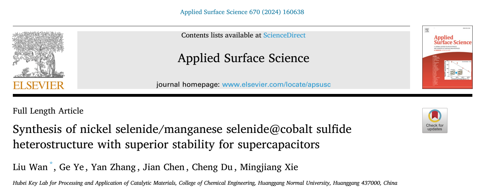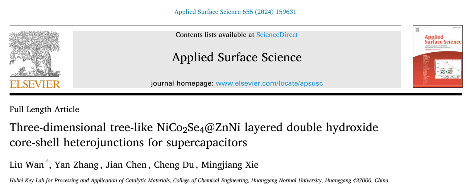 我校校级科研团队炭基能源材料团队,在期刊《Applied Surface Science》连续发表两篇最新研究成果“Synthesis of nickel selenide manganese selenide@cobalt sulfide heterostructure with superior stability for supercapacitors”和“Three-dimensional tree-like NiCo2Se4@ZnNi layered double hydroxide core-shell heterojunctions for supercapacitors”。威廉中国官方为论文唯一通讯单位,我院本科生叶格(化工2020级)、张燕博士、陈建博士、杜成博士和解明江教授参与了研究工作,万柳博士为论文第一作者。《Applied Surface Science》是由Elsevier集团出版的材料界面领域的国际重要学术刊物,位列中国科协高质量科技期刊分级目录中材料表面与界面领域的T1级,同时为SCI中科院分区TOP期刊。