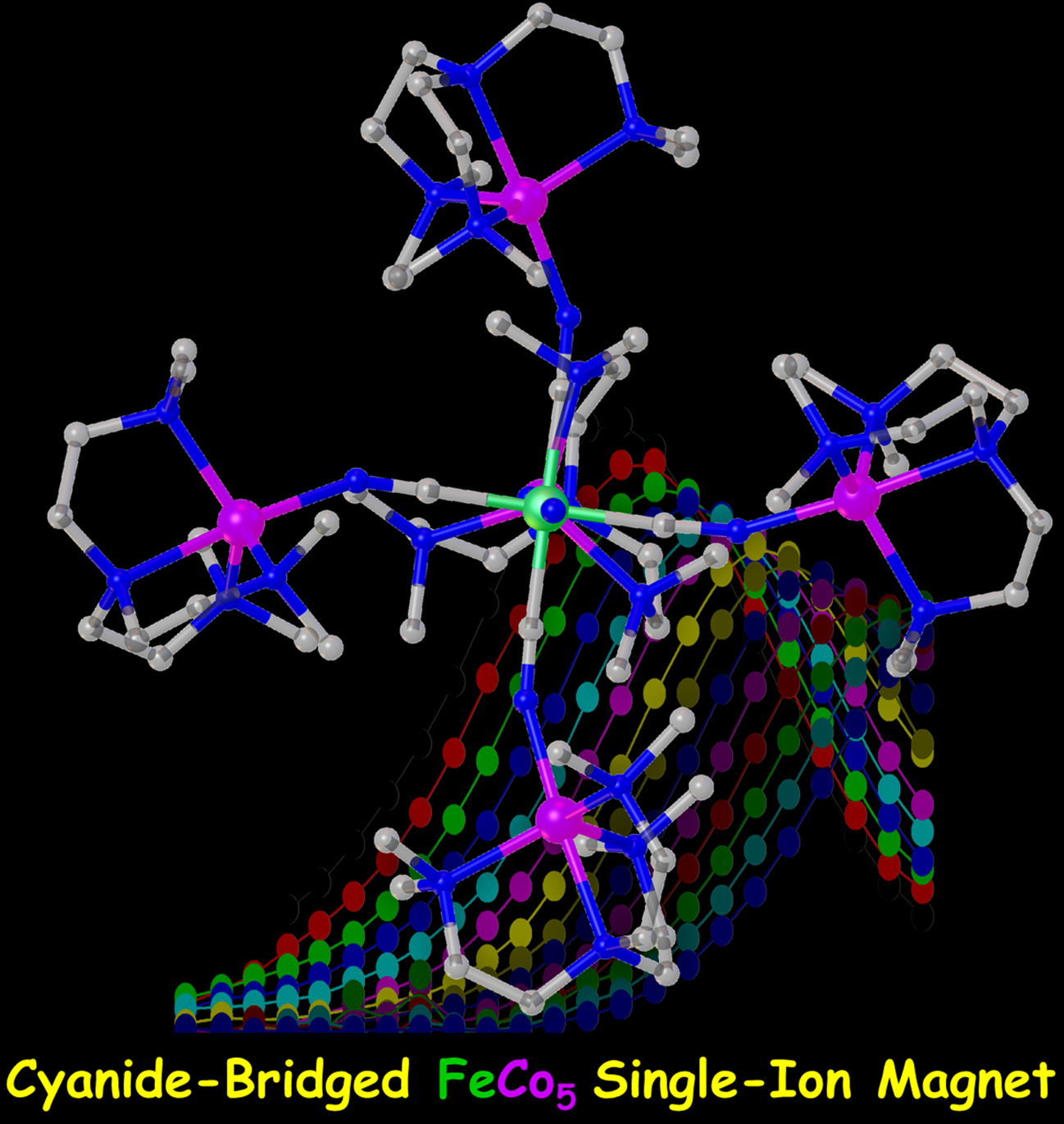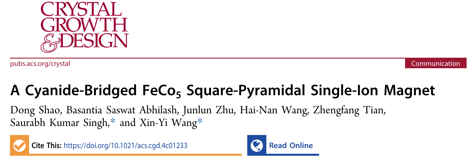 对于单分子磁体而言,多核过渡金属团簇化合物仍然是迄今为止报道的最大的单分子磁体类别。单金属中心的单离子磁体报道已经很多,但基于具有新颖结构的各向异性过渡金属离子的团簇分子体系仍然引起了极大的兴趣。然而,设计和构建这样的多核单离子磁体配合物非常困难。基于此,团队通过利用抗磁的二价铁氰根构筑单元与单核钴配合物前驱体反应,合成了一例具有四方锥结构的FeCo5六核团簇,单晶衍射分析和磁性测量表明该化合物为第一例六核的单离子磁体。该工作以 “A Cyanide-Bridged FeCo5 Square-Pyramidal Single-Ion Magnet”为题,发表在Crystal Growth Design。邵东副教授为论文第一作者,威廉中国官方为论文第一通讯单位。南京大学王新益教授和印度理工学院Singh教授参与了本工作的研究。