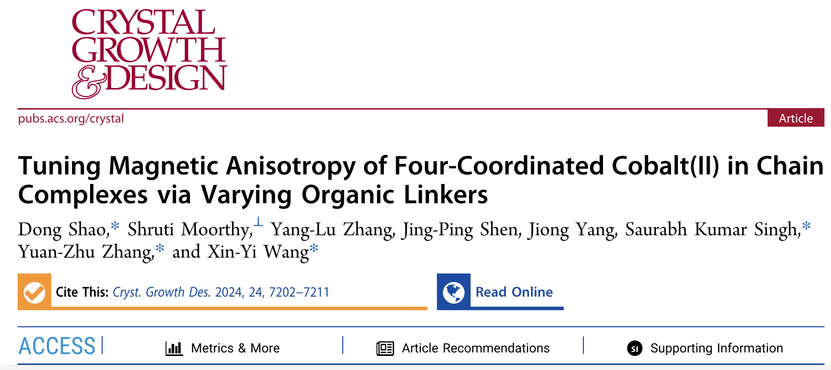 单分子磁体是无机化学研究前沿,单分子磁体因在量子计算和量子存储方面具有潜在的应用而受到广泛关注。近期,我院邵东副教授课题组连续在Crystal Growth Design(《晶体生长与设计》)上发表单分子磁体最新研究成果。Crystal Growth & Design是American Chemical Society(美国化学会)出版社旗下晶体学领域权威期刊,中科院SCI小类一区期刊,中国科协高质量科技期刊分级人工晶体学T1期刊。