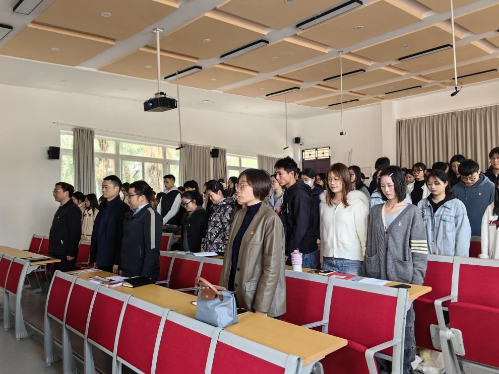 四月的校园,松柏凝翠,又一年清明悄然而至。为加强学生党员理想信念教育和爱国主义教育,铭记革命先烈的英勇事迹。4月1日中午,WilliamHill威廉在博学楼B01教室举行清明节祭英烈活动。院党委副书记龙刚、全体辅导员老师以及全体学生党员参加活动。本次活动由学生党员王羽琪主持。
