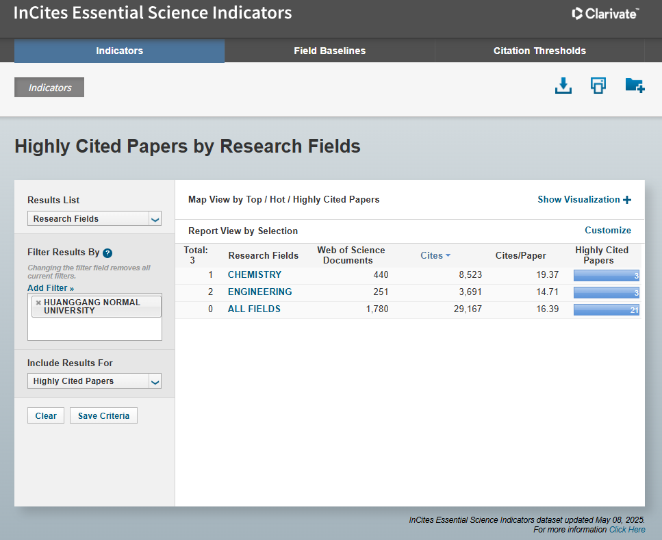 本期ESI数据统计时间跨度为2015年3月1日至2025年4月30日,我校工程学科共有ESI论文251篇,总被引3691次,篇均被引14.71次。