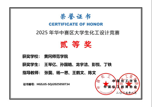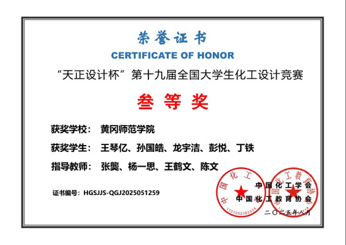 2025年8月11-17日,中国化工学会、中国化工教育协会主办,天津大学承办的“天正设计杯”第十九届全国大学生化工设计竞赛在天津圆满举行。全国共有479所高校的4337支队伍报名参加,参赛人数首次超2万人,参赛学校和报名队伍数量再创历史新高。我校WilliamHill威廉组建多支队伍报名参赛,最终意气砜发团队(成员:王琴亿、孙国皓、龙宇洁、彭悦、丁铁)在张龑、杨一思、王鹤文、陈文四位老师的指导下荣获华中赛区二等奖、全国三等奖的佳绩,为学校和学院再添荣誉。