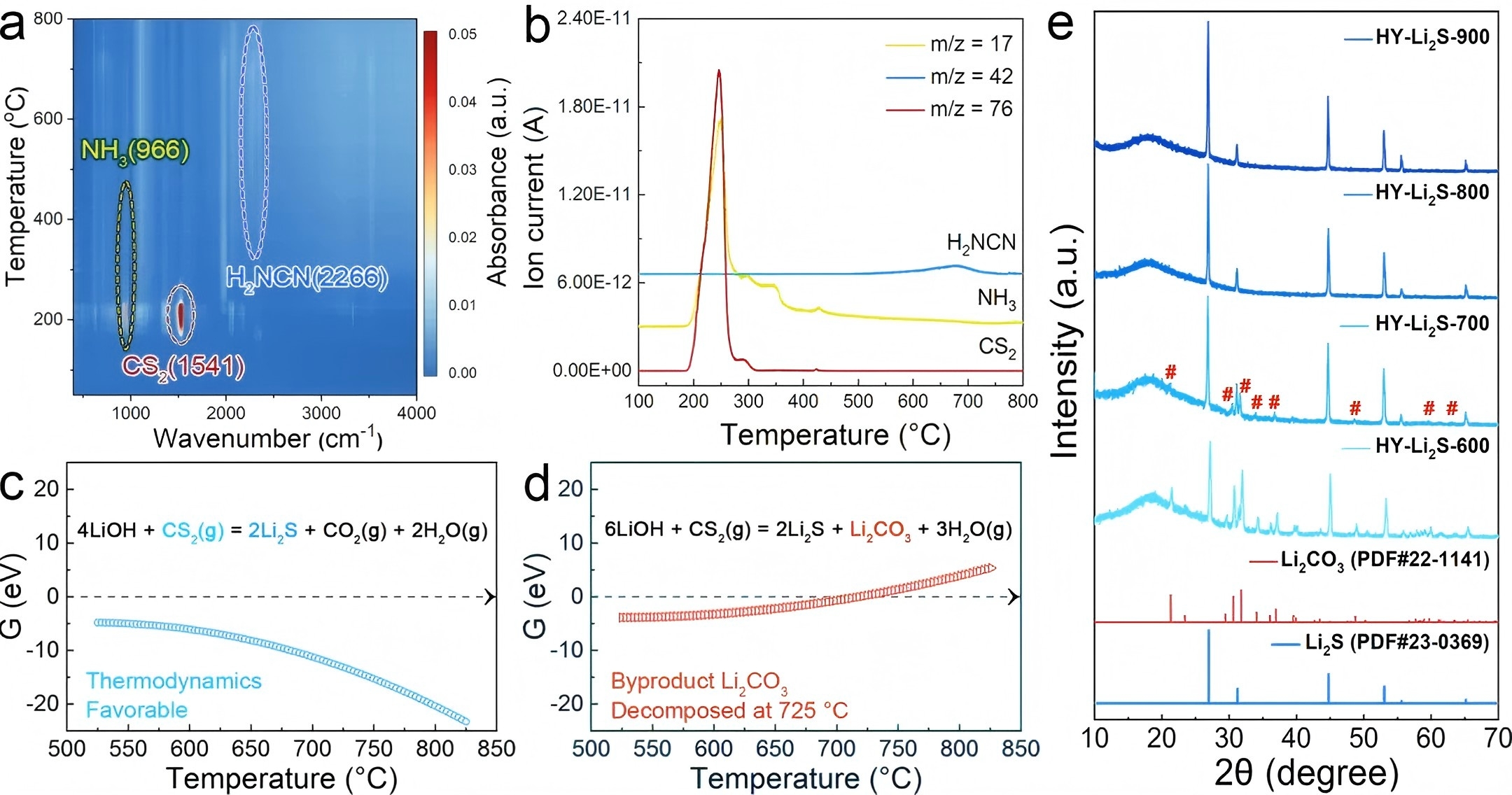 该成果首次实现了以固体硫脲为硫源的无溶剂绿色合成路线,突破了传统液相体系中产物转化不完全与纯化成本高的问题,为高纯Li2S的大规模、低成本生产提供了切实可行的                新思路。